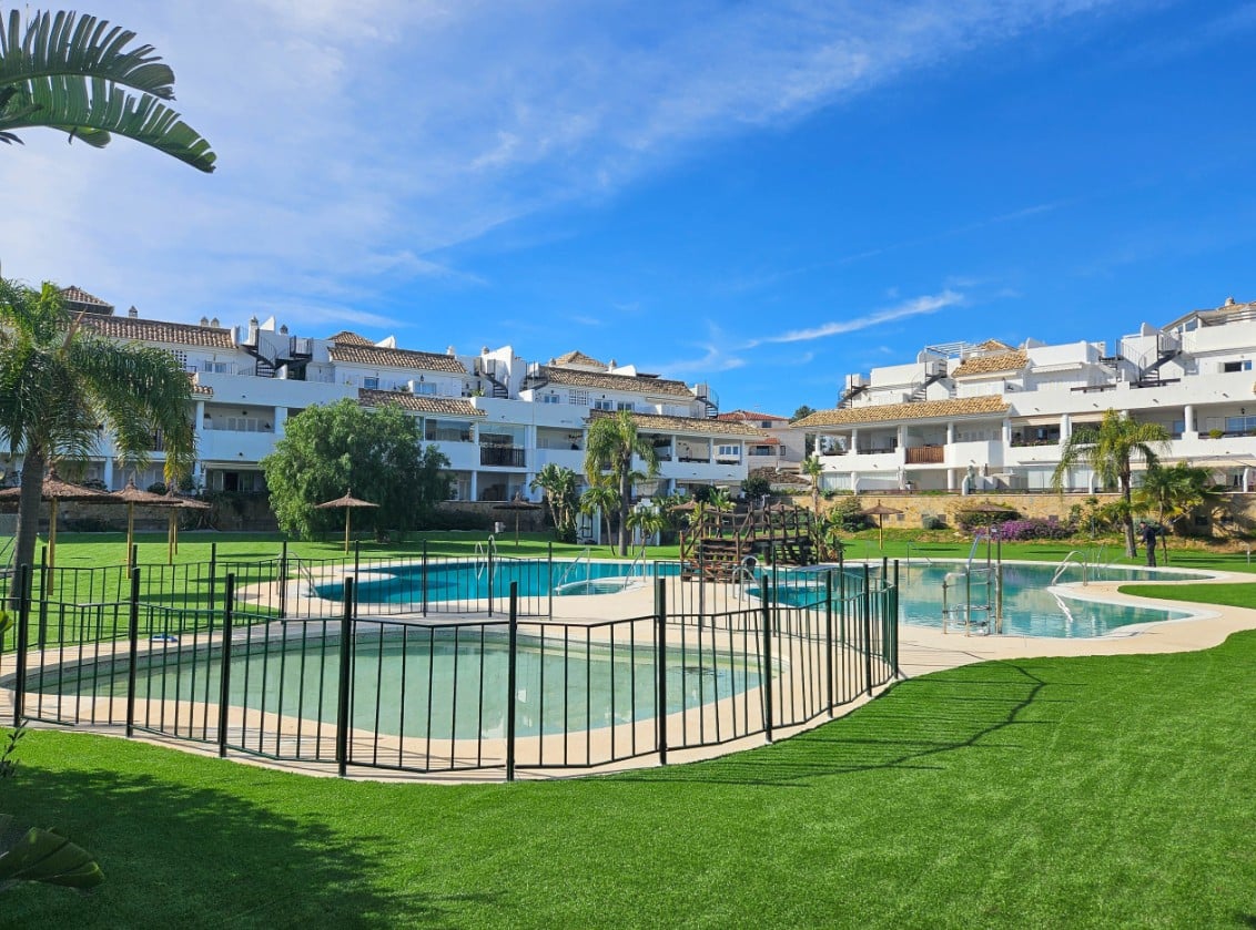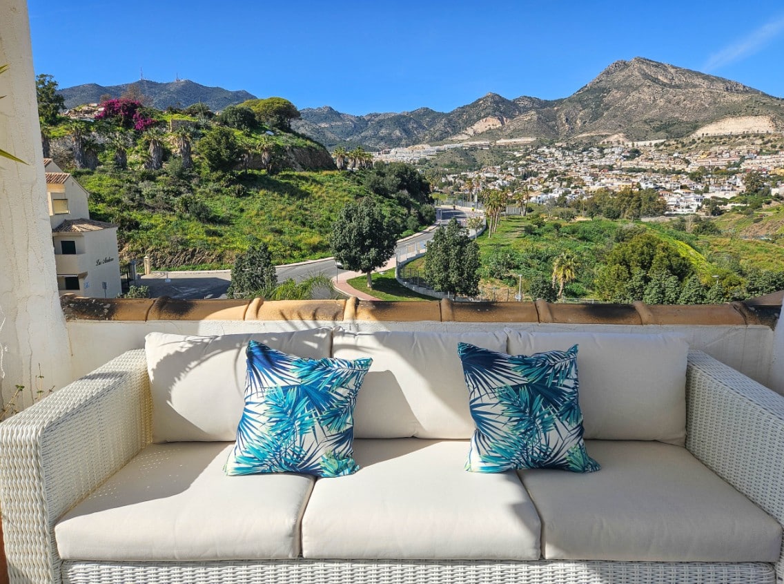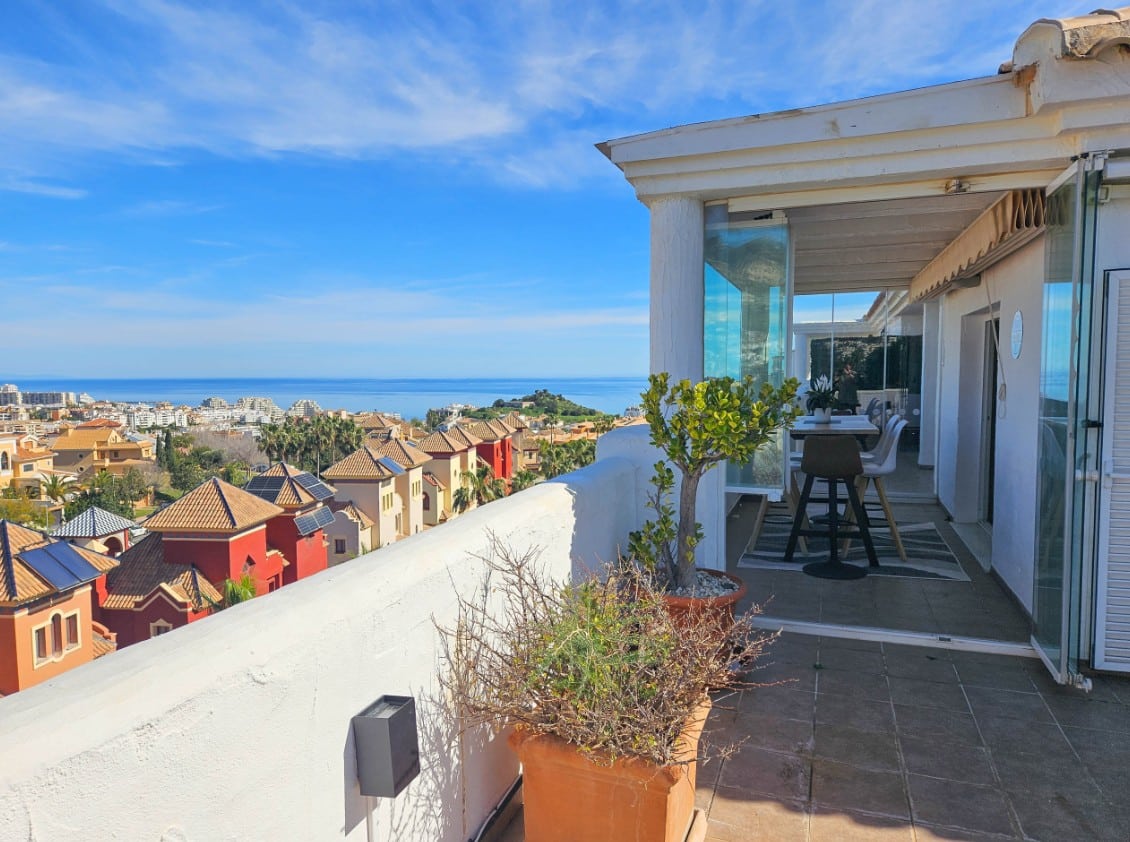 This three bedroom penthouse apartment is located in Vista Hermosa complex, in Torrequebrada. The complex offers a large communal pool, a separate children’s pool and two padel courts The apartment benefits from two covered parking spaces within the secure gated complex, and has free WIFI and hot & cold aircon units in the lounge and bedrooms. The property is located 1 km from the closest restaurant & supermarket, 1km from Torrequebrada Golf club, 2 km from the beach, 3km from Benalmadena town and 15 km from Malaga airport.