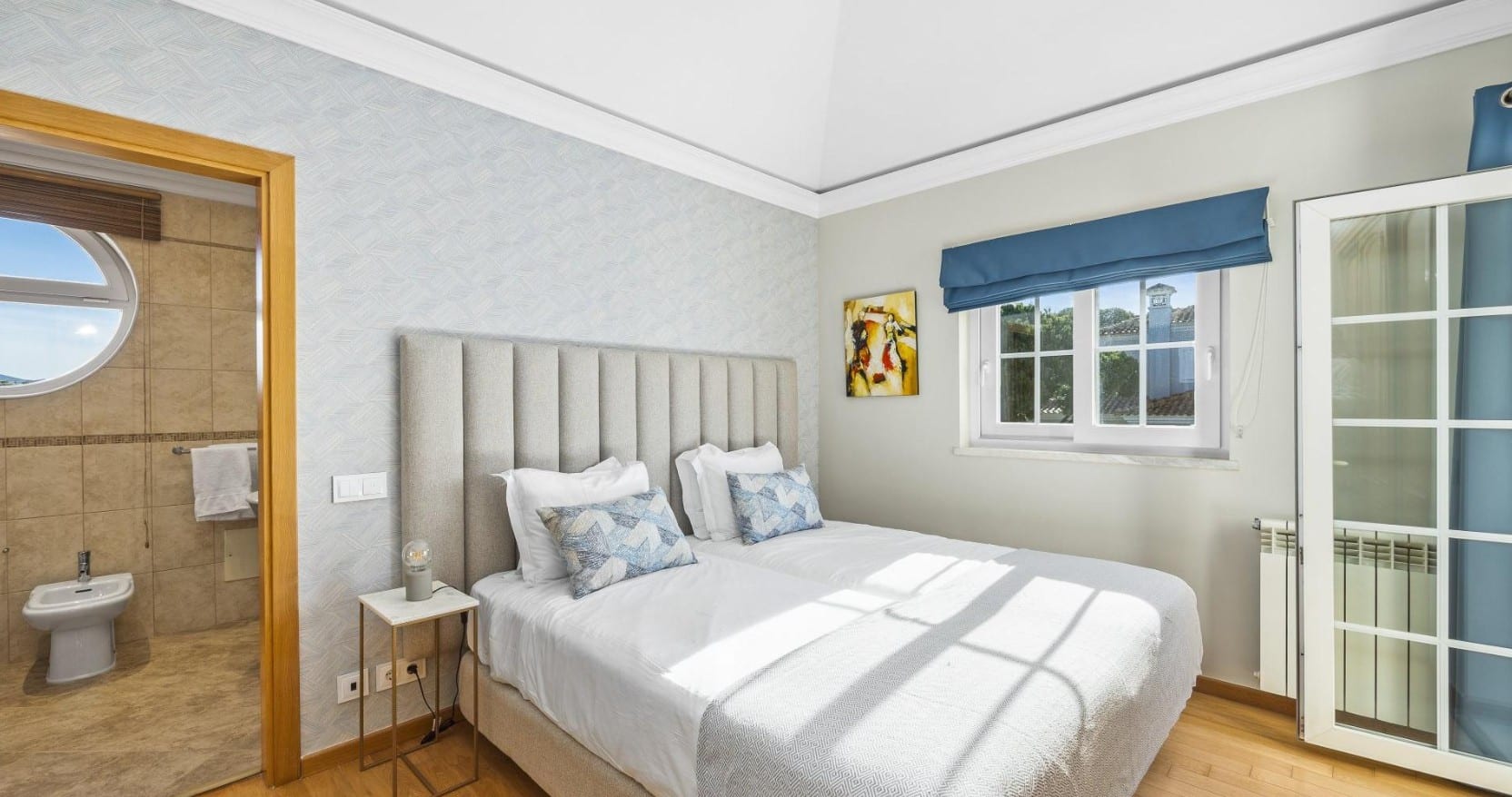 After busy days in the sun, Villa Font offers peaceful, air-conditioned bedrooms designed for rest and comfort.