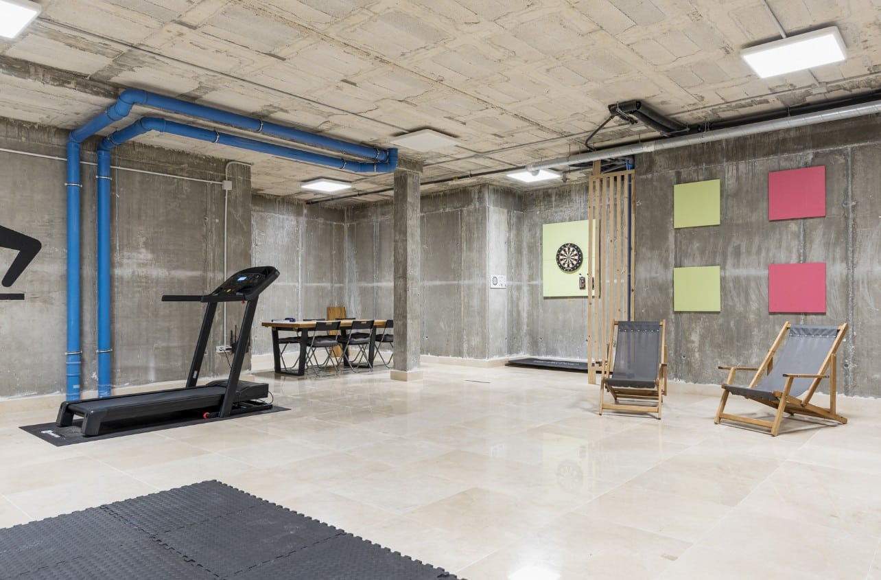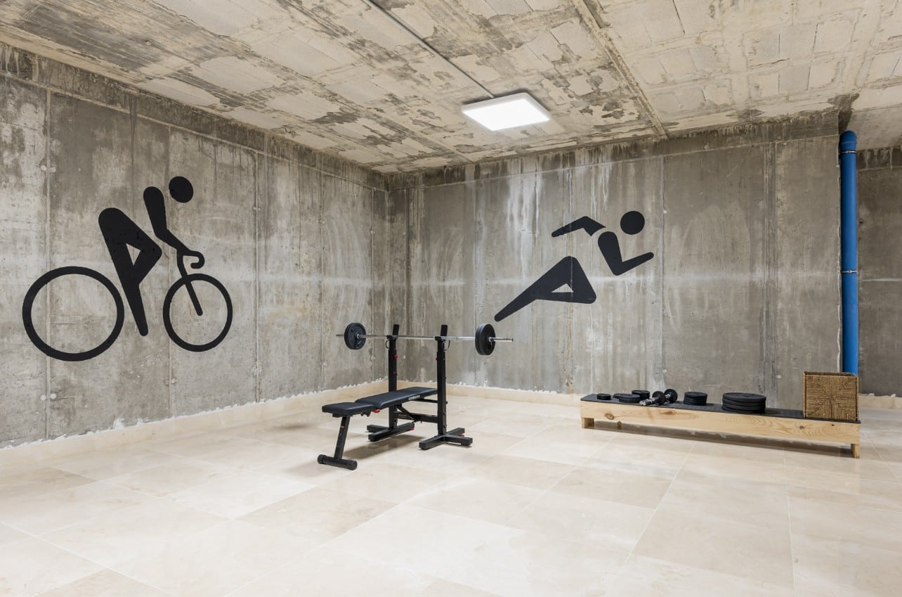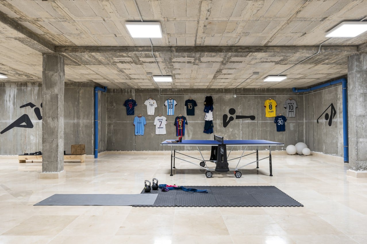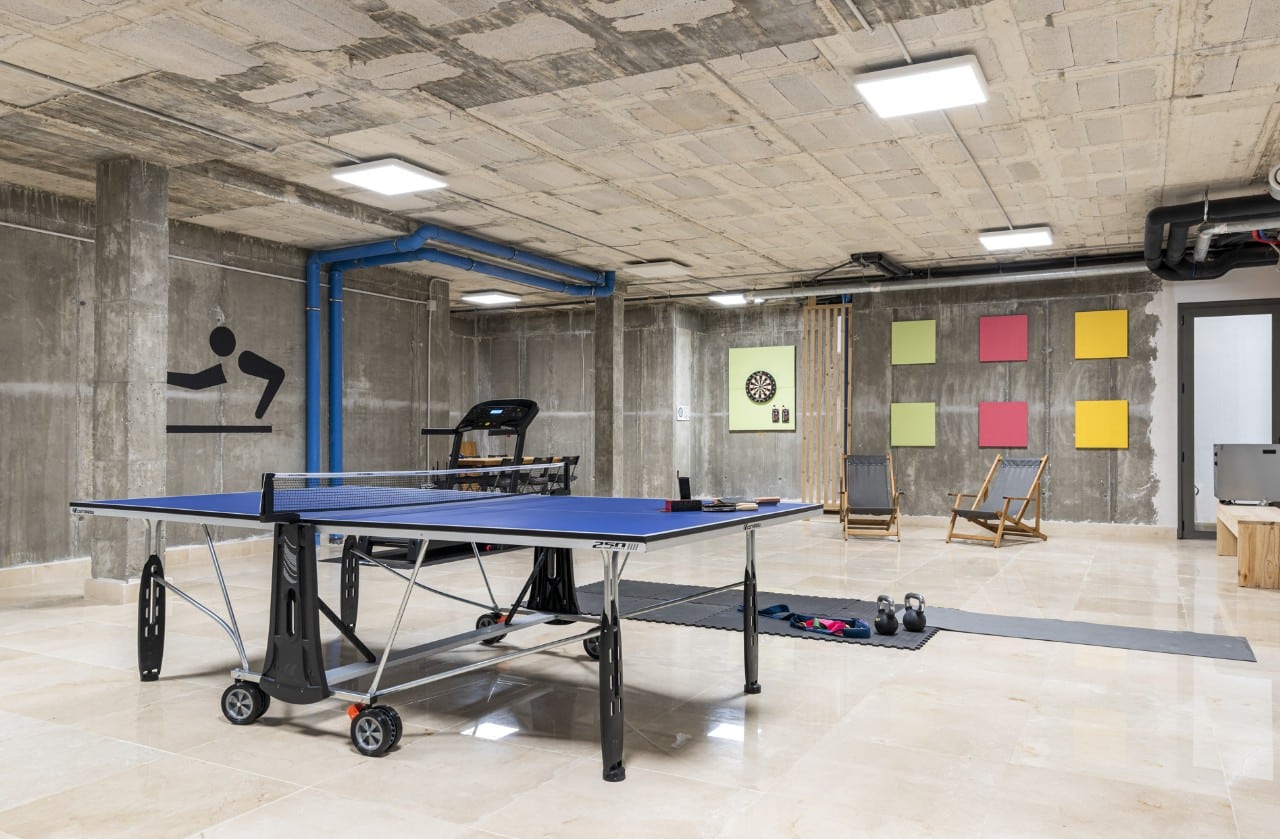 For entertainment and exercise, the villa’s game room is located downstairs and includes a ping pong table, darts, and gym equipment. It’s a fun space that offers something for everyone, whether you’re in the mood for a game or a quick workout.