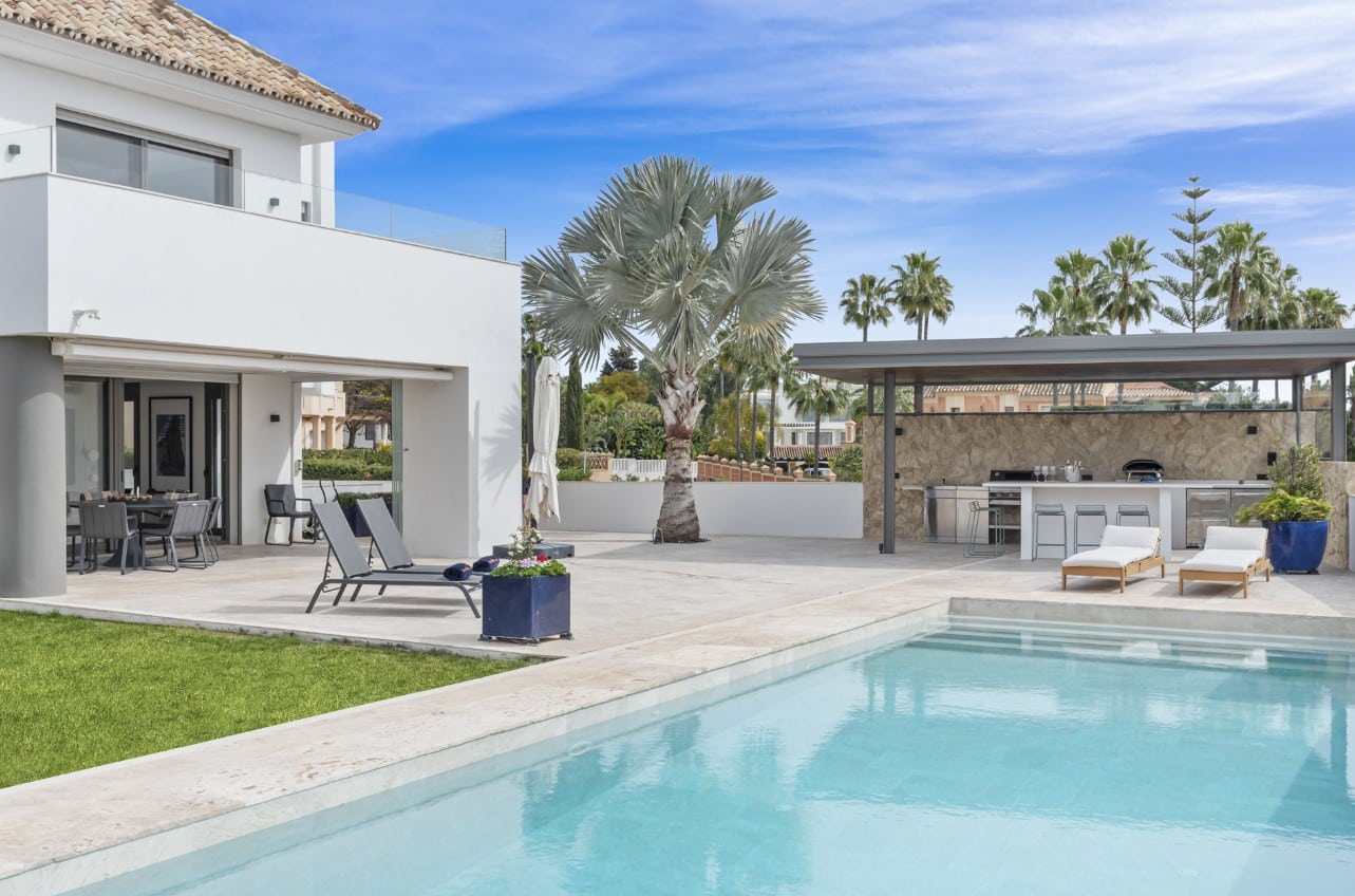 Welcome to Villa Mocca! This villa combines modern comfort with relaxed living, making it an ideal choice for anyone looking to stay close to Marbella. Located beachside and just steps away from one of Marbella’s best beaches, Los Monteros Beach, you’ll also find vibrant restaurants, a supermarket (Aldi) within walking distance, and a boardwalk perfect for beach walks or bike rides. The area is home to some of Marbella’s best beach clubs, making it an unbeatable location for relaxation and fun.