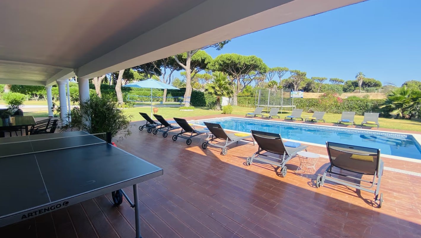 • Private parking available A complete outdoor space, designed to offer comfort, leisure, and privacy throughout your stay. Location Prime location: 900 m from Praia do Cavalo Preto, close to restaurants, supermarkets, and 3 km from Quarteira and the Vale de Lobo golf course.
