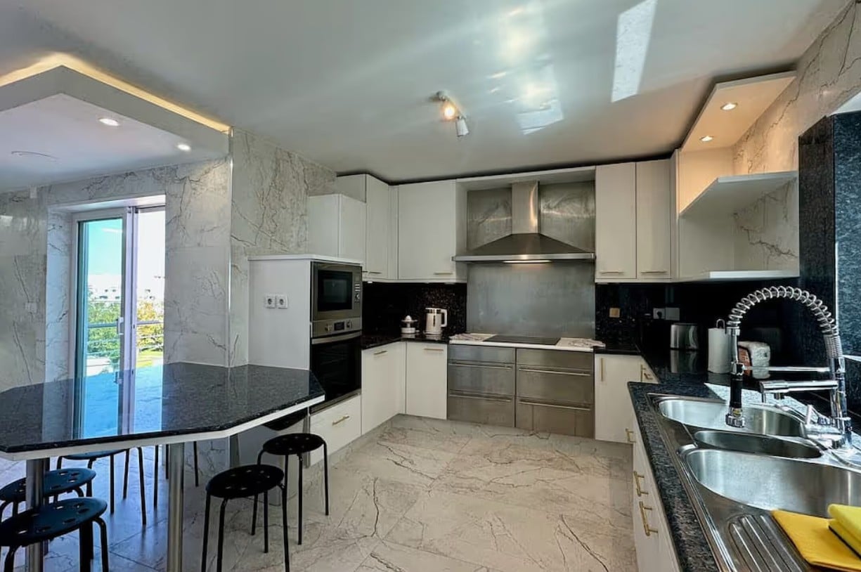 • Fully equipped kitchen: fridge, oven, stove, microwave, coffee machine, dishwasher, washing machine and all essential utensils
