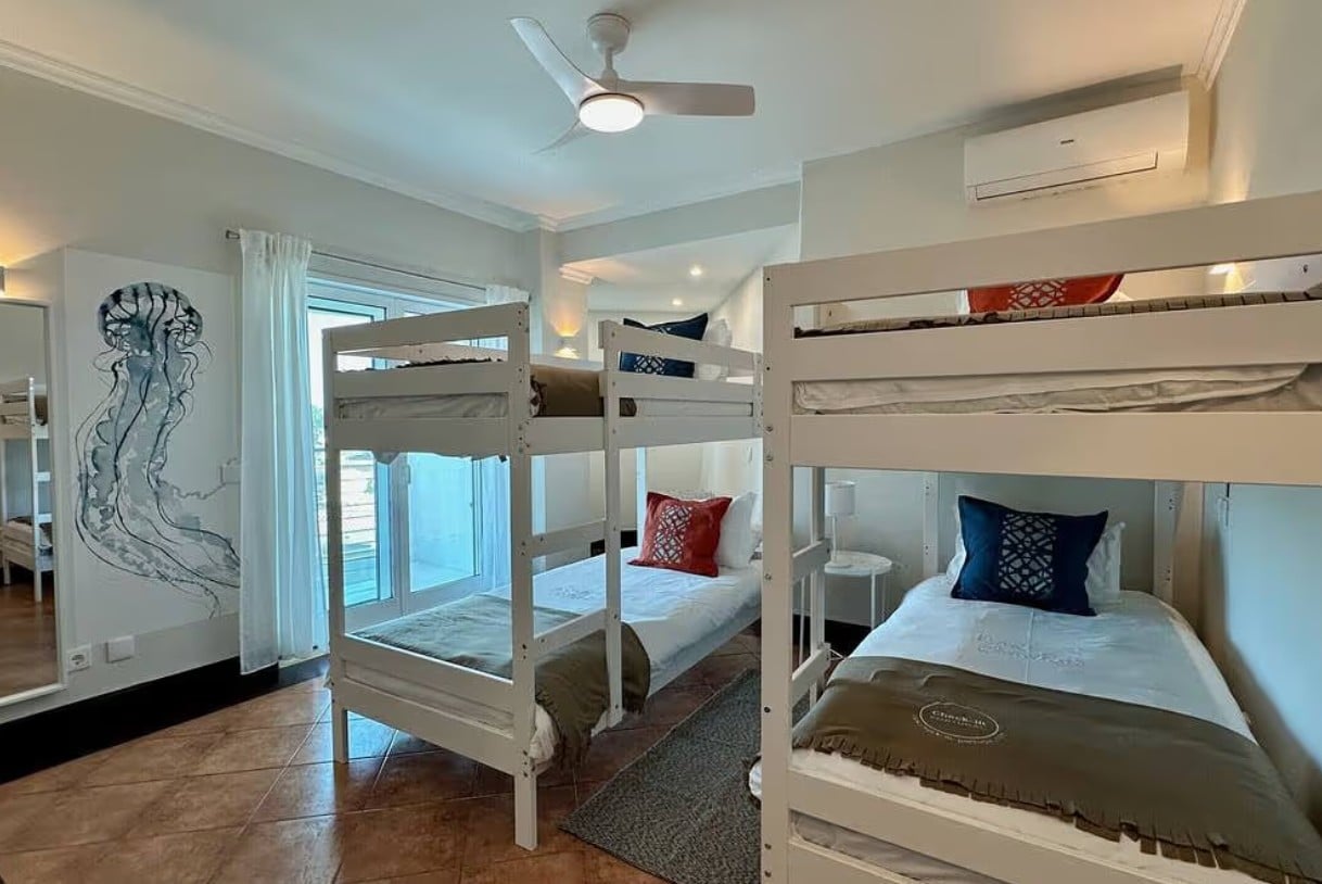 • 4 spacious bedrooms (2 rooms with 2 single beds, 1 room with 2 bunk beds, 1 room with a double bed)