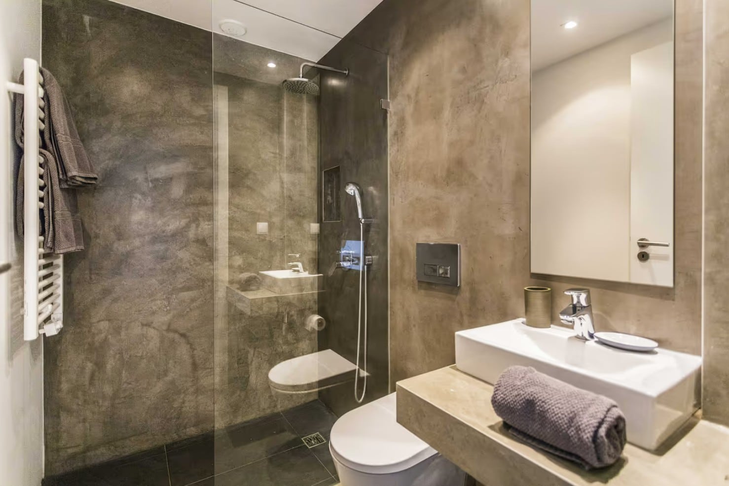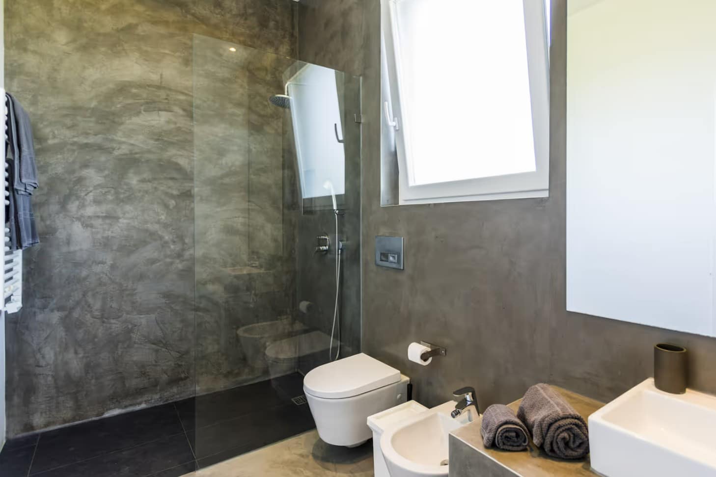 Each bedroom has its own en-suite bathroom, which are decorated in modern marble.