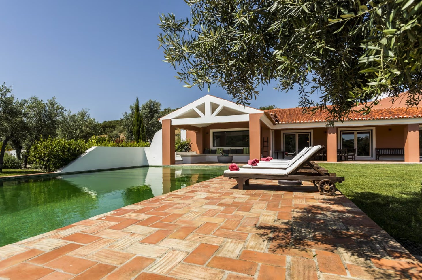 Perched atop a hill in the stunning rolling landscape of Grandola, this villa is a true hidden gem, just an hour from the Lisbon coast, a mere five-minute drive from the town of Grândola itself, and twenty minutes from the renowned beaches of Comporta.