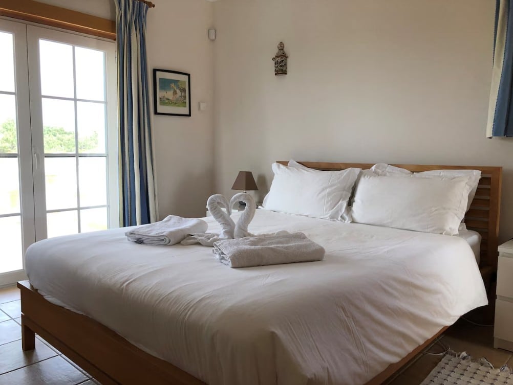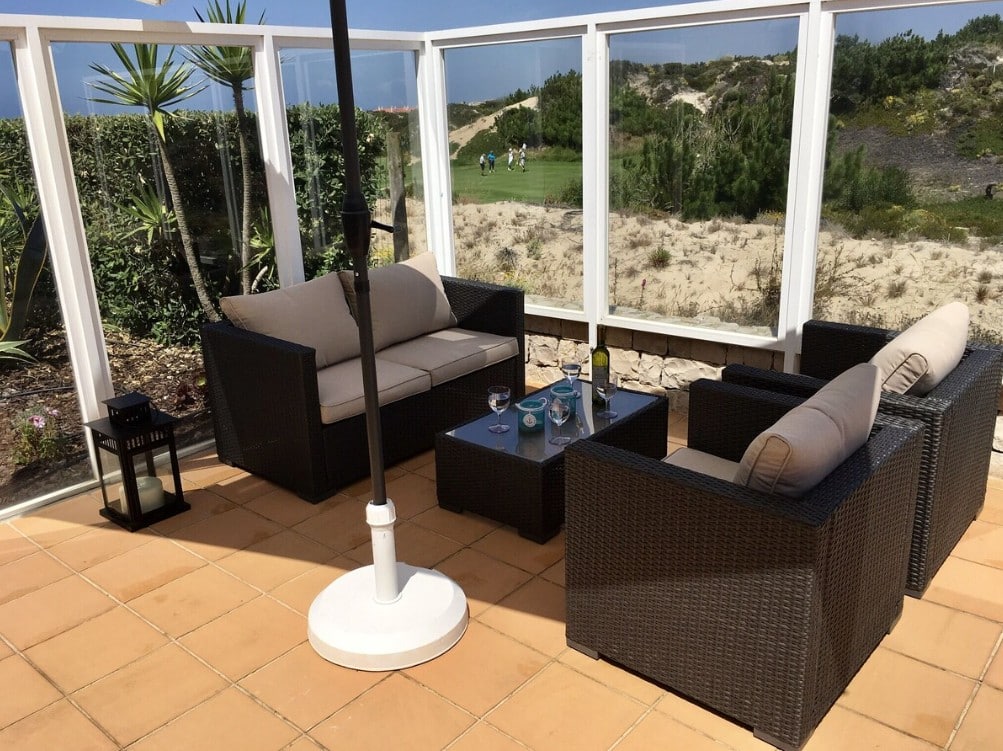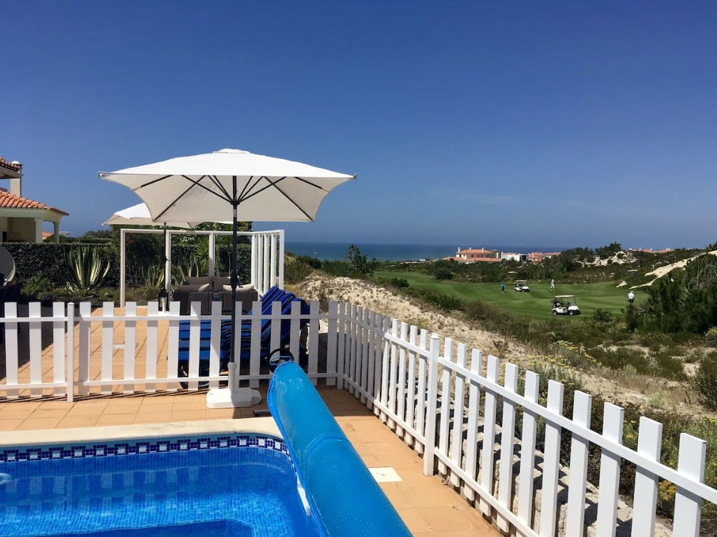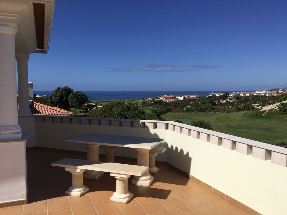 Praia del Rey Golf and Beach Resort is a resort with a beautiful golf course. Villa Ninho dos Corvos is a 5-minute walk from the clubhouse. A 5 * Marriott Hotel with all services such as spa, hairdresser, indoor and outdoor pool, fitness, bicycle rental and various restaurants is within 10 minutes walking distance. These services are available to our tenants (for a fee). The beach is around 10 minutes’ walk away. The villa has a view of the green of hole 17 and the Atlantic Ocean. There is also a mini market, kids club, adventure club and various tennis courts at the resort.
