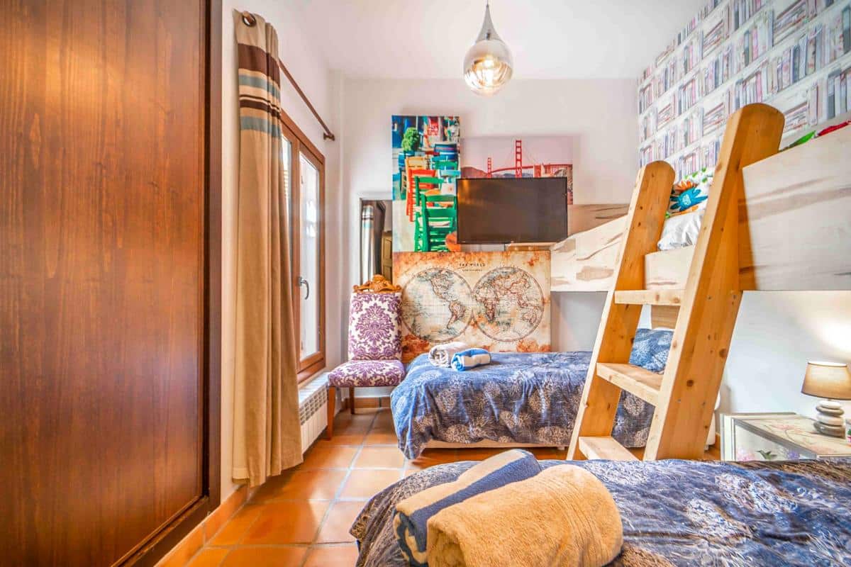 – Bedroom with two single beds and two smaller single beds for children above
