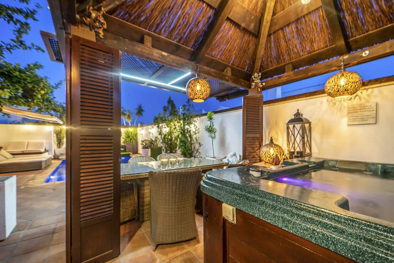 – Hot tub under Tahiti hut