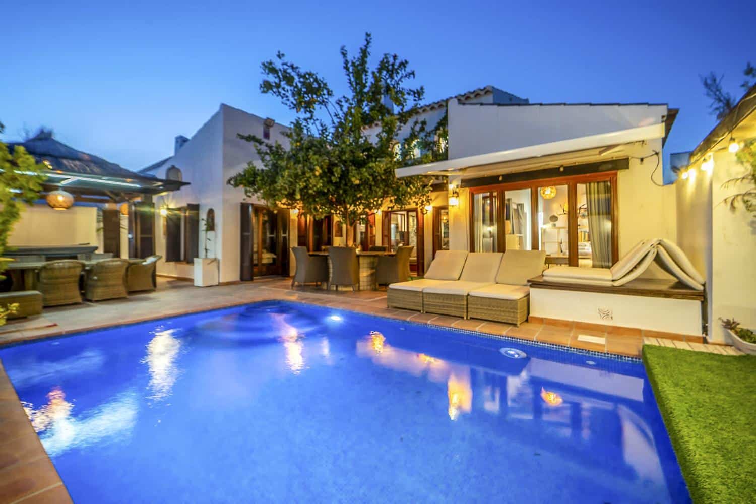This villa is the perfect home away from home for your getaway to Murcia. It’s a quintessential Spanish home, sitting in a private courtyard adorned with lush greenery. You feel as though you are in your own oasis far from the city, yet it’s just 10 minute drive into Murcia, 10 minutes from Murcia (RMU) International Airport and just 20 minutes from the beaches on the Mar Menor sea. The villa can accommodate up to 15 guests, with six bedrooms and three bathrooms.