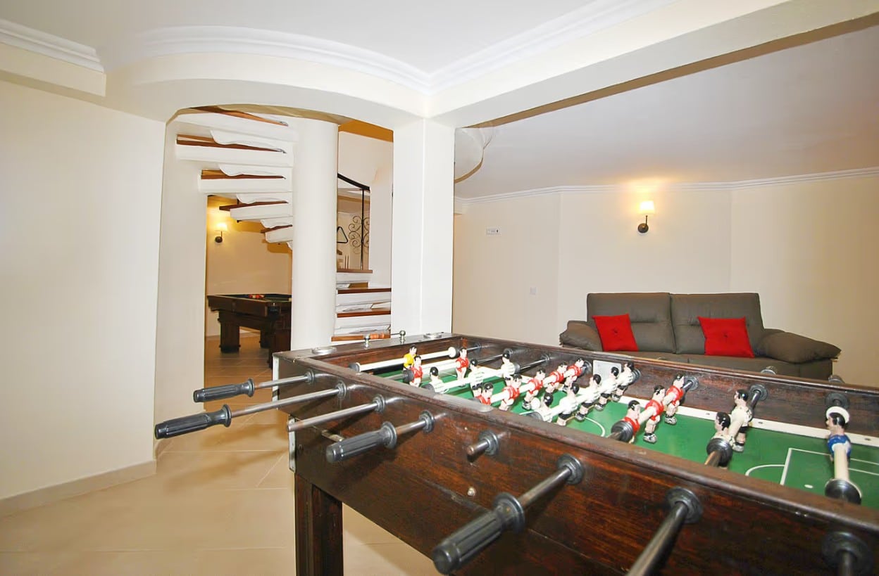 This property features a fully equipped gym and a games room with a pool table and table football, ideal for fun for all ages.