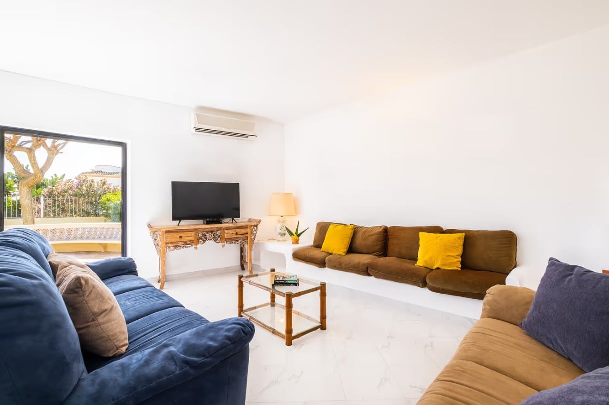 The living room is large, welcoming, and bathed in natural light, creating a perfect environment for socializing and relaxing moments as a group.